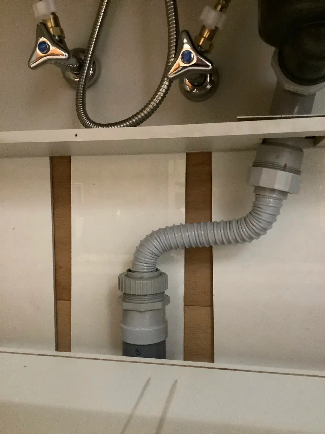 作業では排水ホースと給水部材の新設を行い、同時に水栓も新しいタイプに交換いたしました。