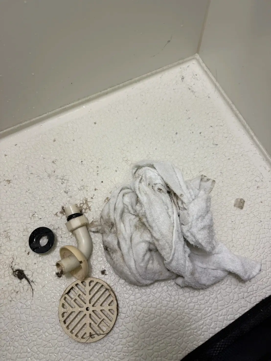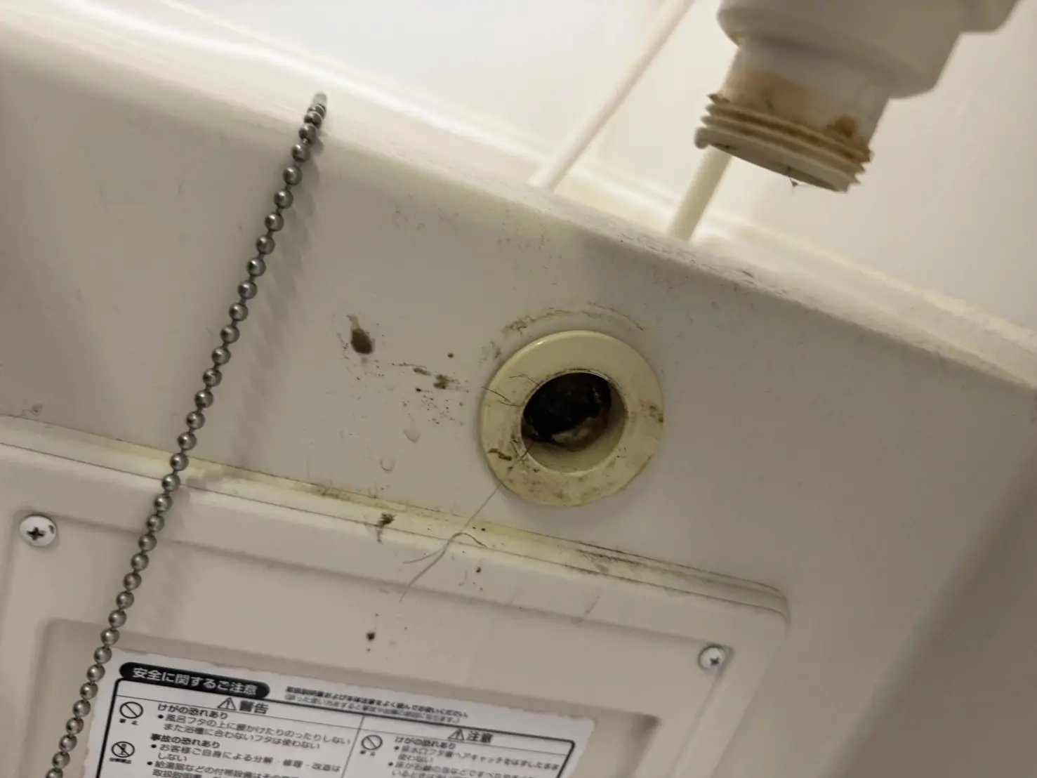 調査の結果、排水管内部に髪の毛や汚れが堆積して水の流れを妨げている状態でしたため、排水管をばらして内部の詰まりをしっかり取り除く作業を行いました。