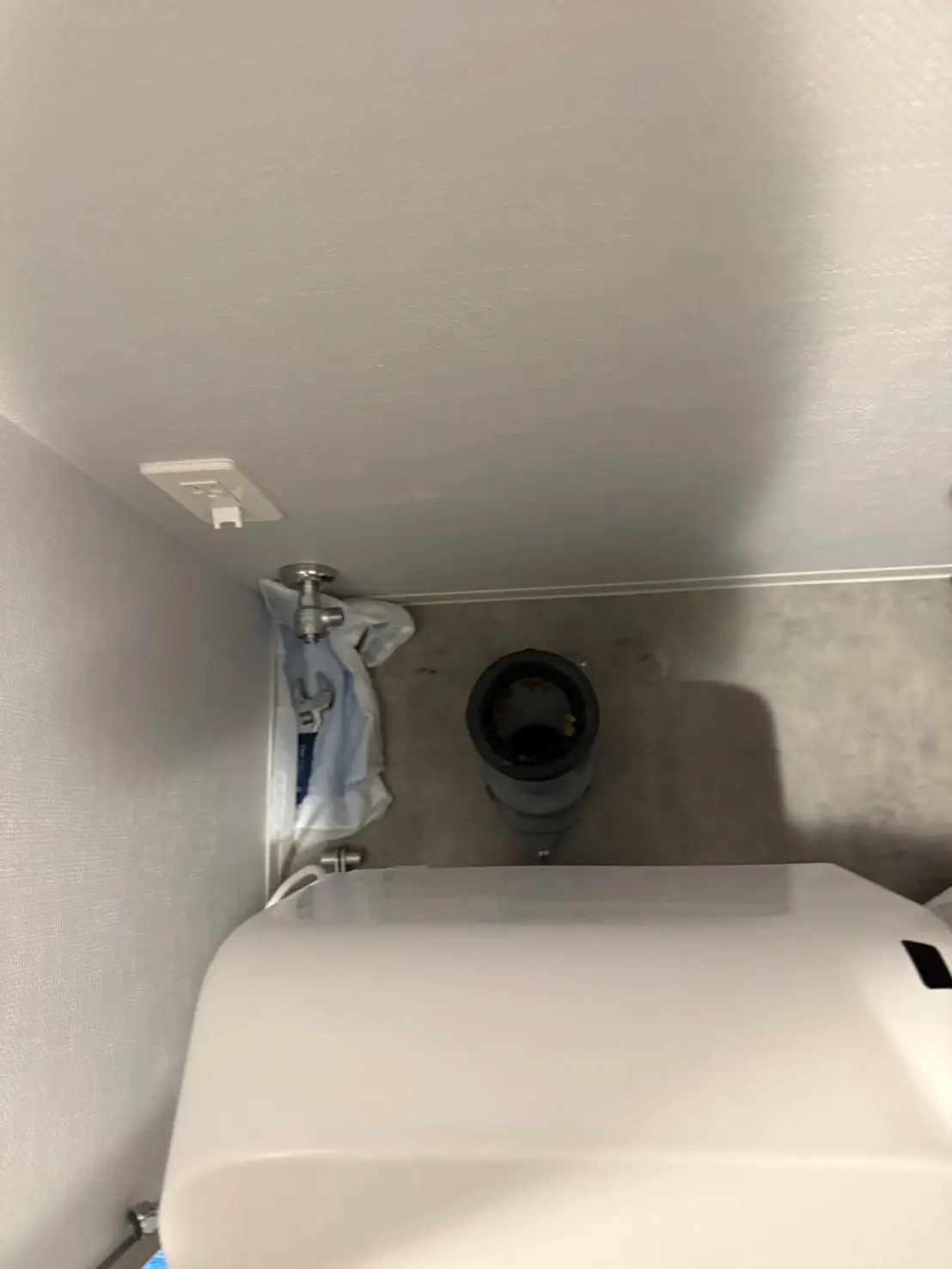 現場では、ファブリーズ容器が便器内部に落下し、排水経路を塞いでしまう典型的な異物詰まりのケースでした。