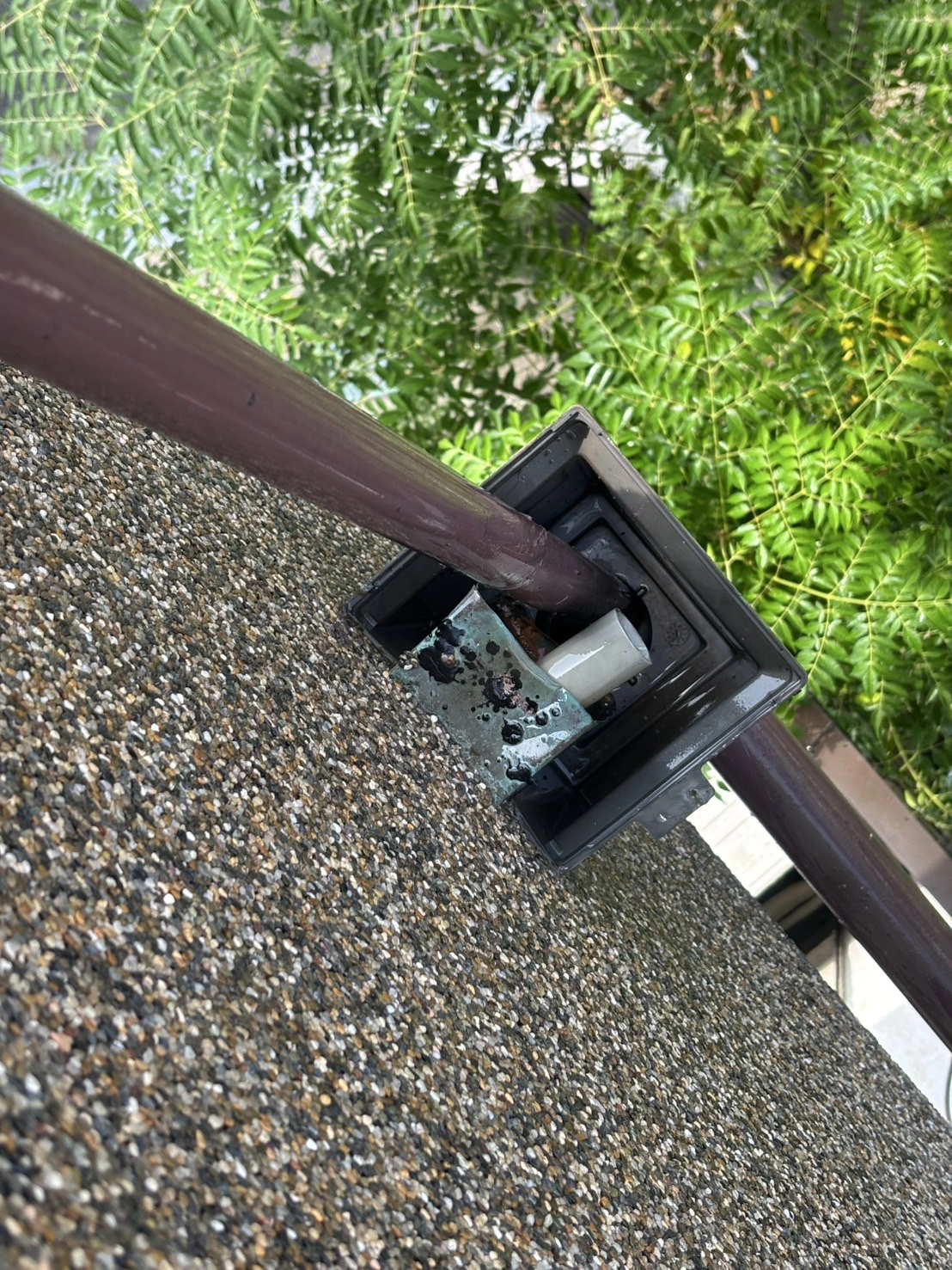 現場を確認したところ、外側の排水溝から水が逆流し始めており、2階へ伸びる配管内部で汚れと苔が固まって道を塞いでいる状態でした。