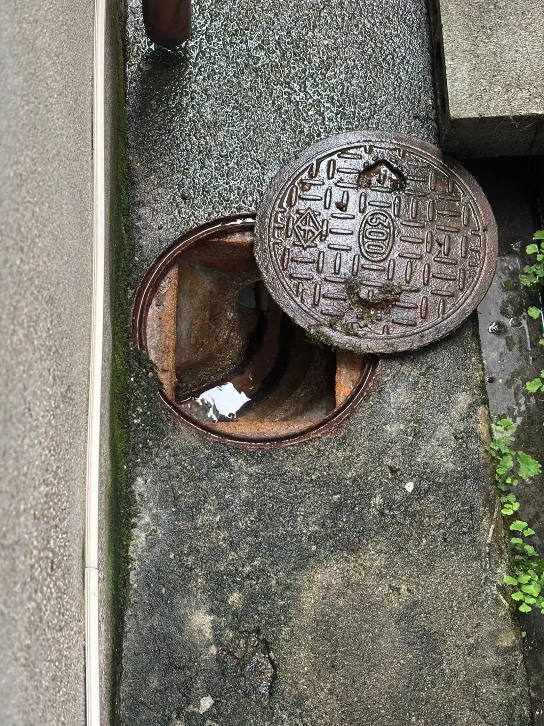現地確認を行ったところ、屋外排水桝内部に汚れや堆積物が溜まり、排水の流れを妨げている状態でした。