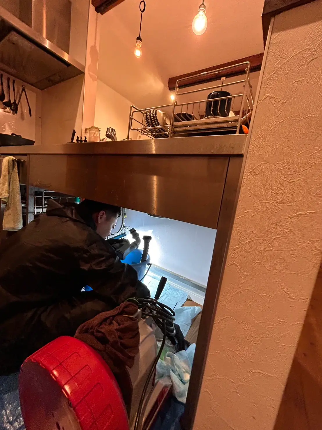シンク下から水漏れ発生!水道局指定業者が高圧洗浄で根本改善!-富士見市鶴馬