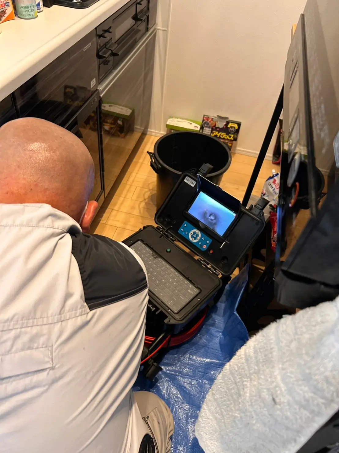 カメラ点検による原因特定と高圧洗浄施工!キッチン排水のトラブル対応-川崎市川崎区観音