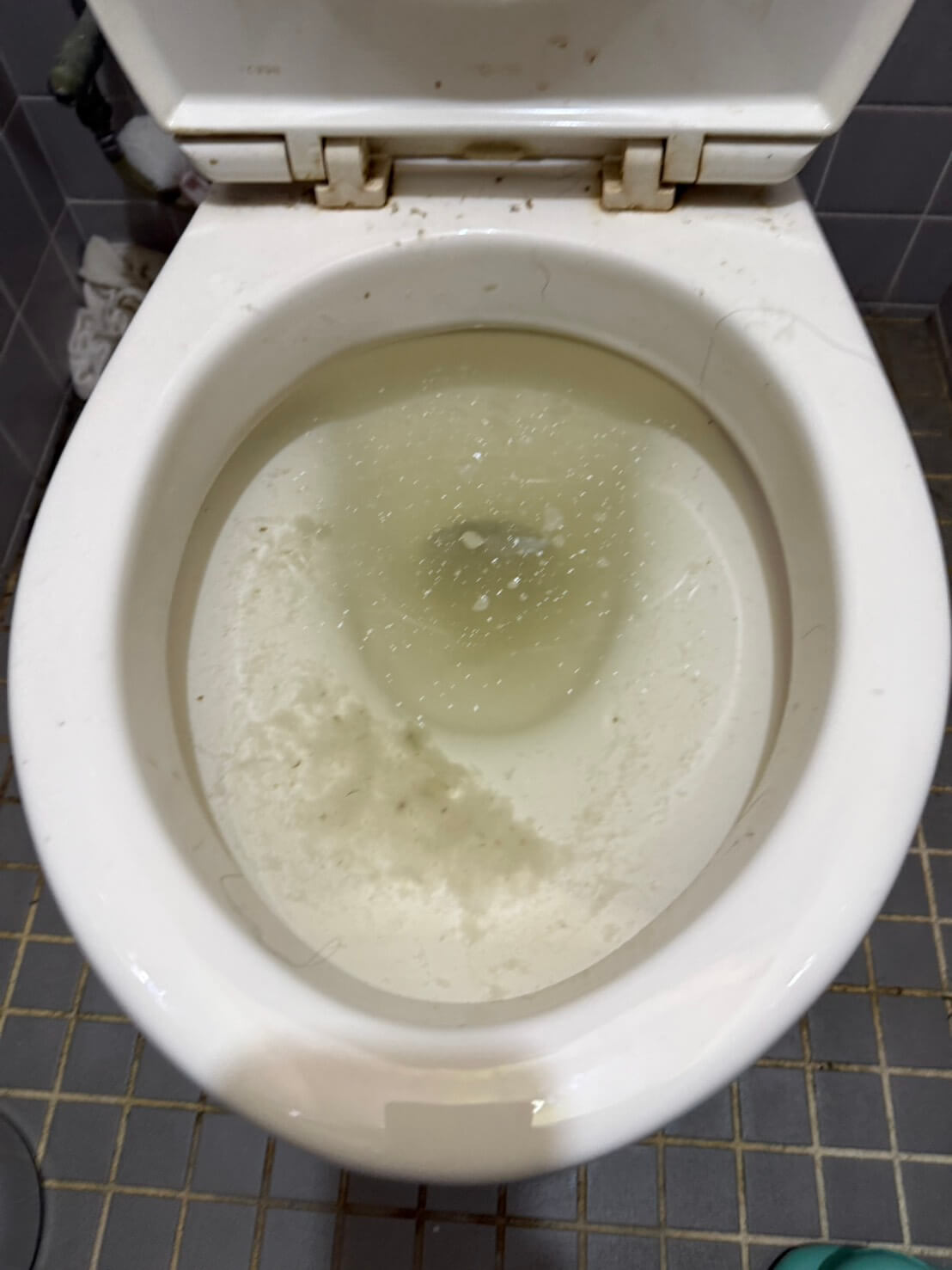 汚物や紙類が排水経路内で固着している可能性が高かったため、薬剤を使用して汚れを分解しました。