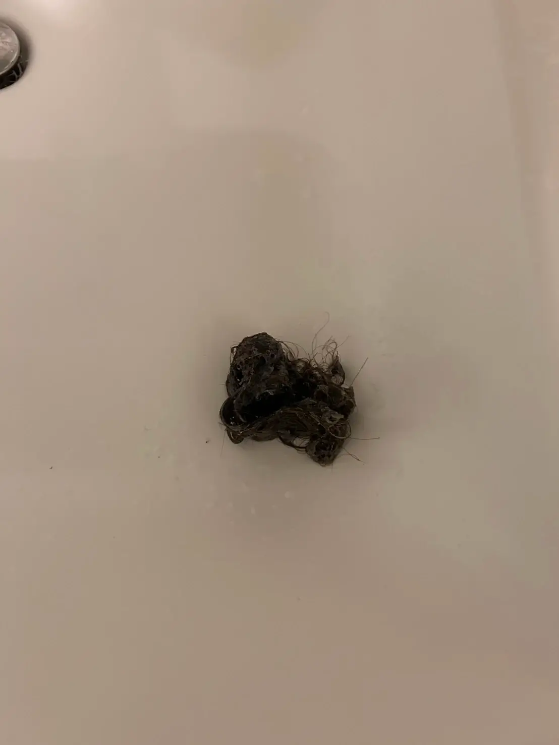 原因を確認したところ、髪の毛や皮脂、洗剤カスが排水管内部に付着し、詰まりかけていたことが判明しました。
