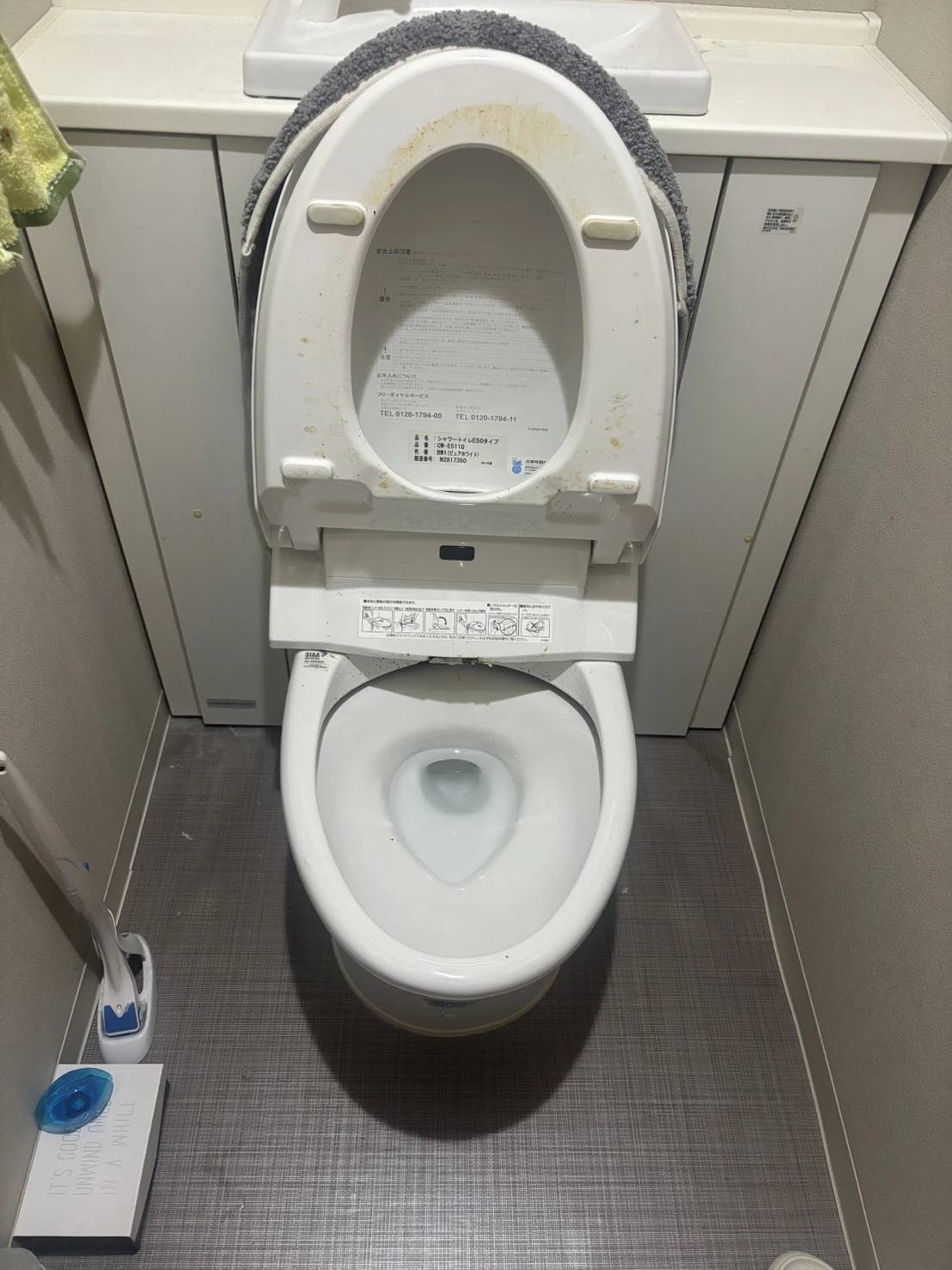 お客様にも、日常的にトイレ周りの物を置きすぎないようにするなど、再発防止のポイントをお伝えしました。
