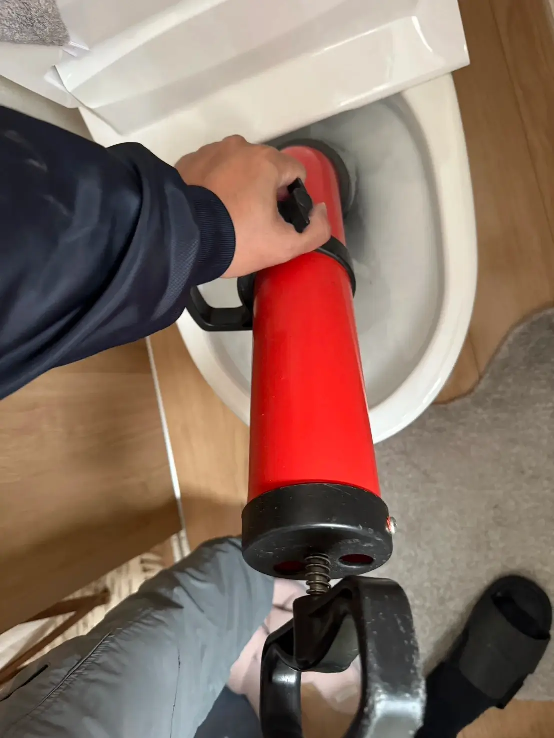 朝、トイレを使ったときに水が引かず、あふれそうになってしまいました。