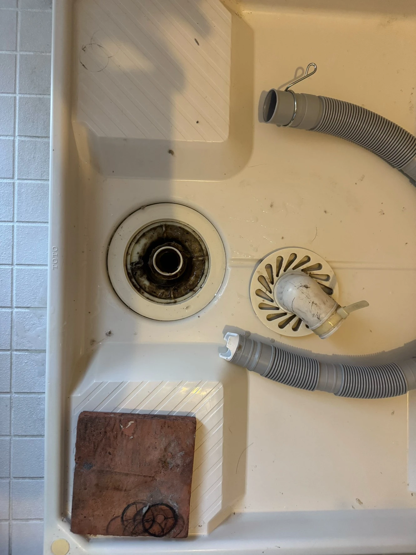 洗濯機を使っていたら排水がうまく流れず、気づけば床付近に水が溜まっていました。