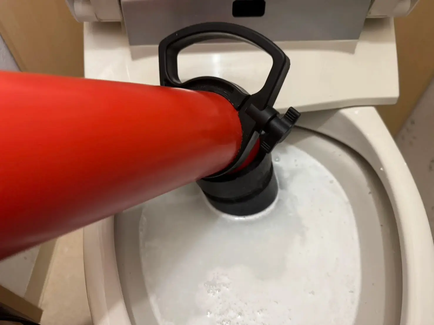 トイレを使おうとしたところ、水が流れずにどんどん溜まっていき、とても焦りました。