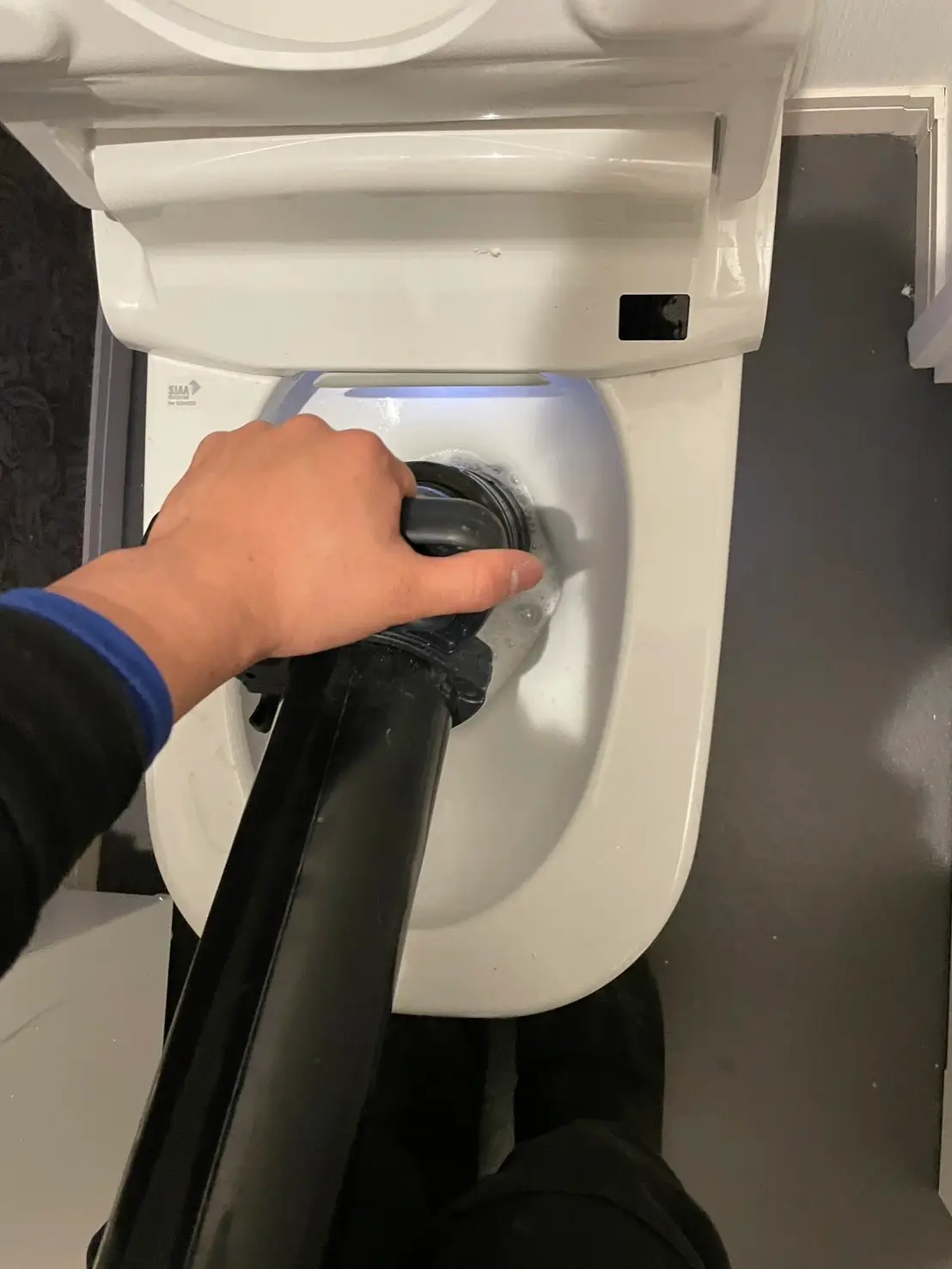 今回は便器内部の詰まりが原因と判断し、ローポンプを使用した作業を行いました。